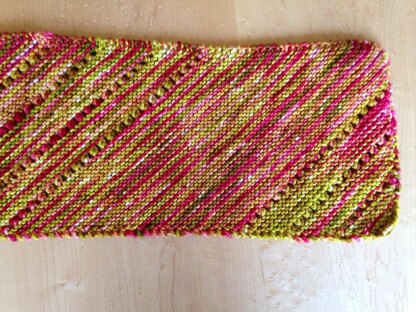 Here’s a quick project to practice knitting on the bias. There are some eyelet rows to keep it interesting while learning how to maintain shape on the diagonal.