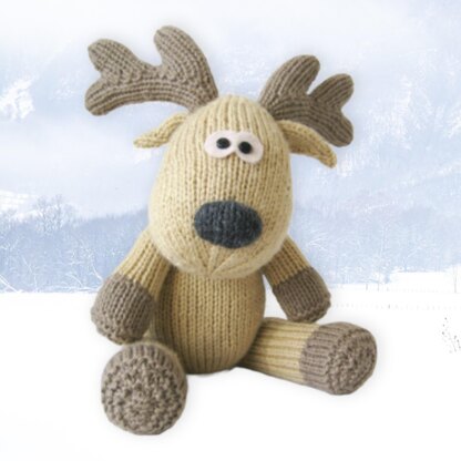 Rupert is a huggable reindeer with a squishy grey nose. Knitted in stockinette, this reindeer is worked in acrylic yarns so it is easier to keep clean after play. Designed by Amanda Berry @fluffandfuzz, Rupert is knitted in acrylic DK yarns on single pointed needles (not in the round). For confident beginners and above, other techniques used include casting on and off, knits, purls, increases and decreases, and seaming to finish.