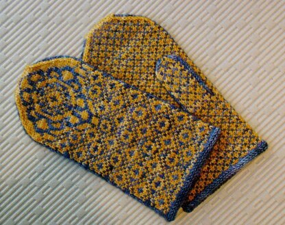 These 2-colour stranded mittens take traditional Russian motifs and throw in a bit of Faberge glamour.