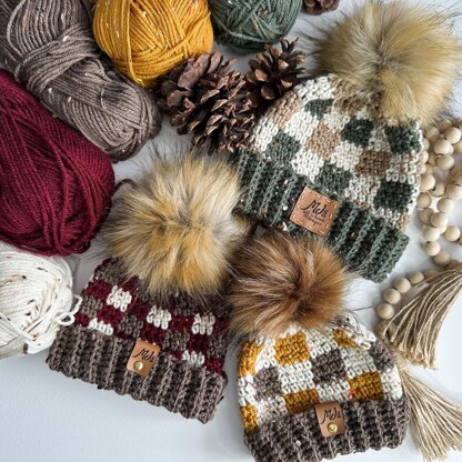 Crochet a classic buffalo plaid hat for winter in baby to adult sizes. The hat can be crocheted in traditional colours or tweeds for a rustic, earthy look. The hat is worked from the bottom up, and the plaid stitch seamlessly works in the round using the reverse slip stitch join. This hat will quickly become a family favourite with a step-by-step tutorial in the 6-12mth size on YouTube.