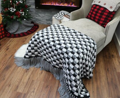 Crochet a Bulky & Quick Plaid Throw. Adds a rustic homemade touch to your Winter decor. This is an easy-intermediate crochet pattern that works up quick! Pattern includes full video tutorial.