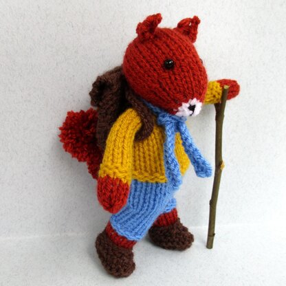 RUSTY the Red Squirrel loves to ramble in the countryside. He wears a scarf and carries a rucksack which will hold two or three hazelnuts to provide a tasty snack when he gets hungry.