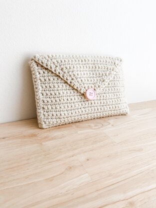 The Ruth Clutch is a simple crochet handbag that looks like an envelope! This clutch has a minimalist style but still holds all your essentials. You can change the style and really make it your own by using different yarn colors and button styles.