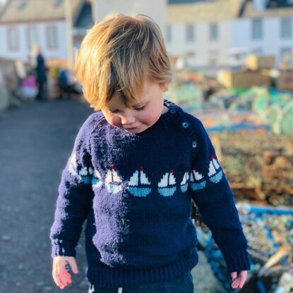 I am lucky enough to live by the sea and this jumper is inspired by the sailing boats I see from my window. It's made in soft wool to keep out the sea breezes and has a front neck fastening to make it easier to put on. I like to make it in a muted palette to give it a vintage look but it looks equally good in brights. The pattern comes in sizes 6 months up to 8 years. Instructions for the colour work include a chart and are easy to read. I have listed amounts of main colour needed but please note that you will require small amounts of three contrasting colours for the boats. If you decide to buy them you will need a 50g ball of each as this is the smallest amount you can buy.