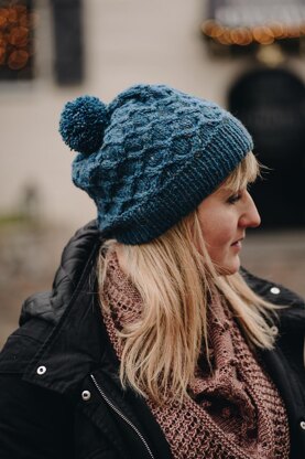 Gauge One cable repeat (12 sts x 8 rnds) is 6 cm/2.25” wide and 3 cm/1.25" high worked in the rnd with needle 4.5 mm/US #7, unstretched. Take time to save time and check your gauge. Adjust needle size if necessary to obtain the correct gauge.