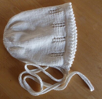 This pretty little bonnet will suit any little girl. Knitted in cotton, it is perfect for those cool spring days, whilst knitted in wool it will keep her snug and warm throughout the winter. The bonnet is knitted in one piece and then seamed down the back before the ties and back edging are added. Sizes range from 1/3 month up to 2-3 years. Guage is 24sts and 30 rows to 10cm/4” in st st using 3.75mm needles. The bonnet is knitted in Debbie Bliss Eco Baby Cotton but could equally as well be worked in almost any other yarn. All but the largest size require only 1 ball of Eco Baby whereas 2 skeins will be required for the larger size. Pattern support can be found in The Knitting Sofa group or by sending me a message.
