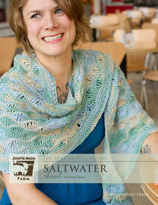 Saltwater Shawl in Juniper Moon Moonshine Trios - Downloadable PDF is a Knitting pattern by Pamela Wynne, available as a Downloadable PDF and includes instructions in English. Super fun to make, this pattern could be your next masterpiece!