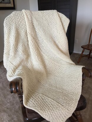 A good "body size" afghan to wrap up in while watching tv, reading, or working on your iPad Use a thick worsted weight (sizes 4 yarn), to make this fun stitch afghan. There are 3 different stitch patterns , easy to follow directions, that are repeated up the afghan to the top. Garter stitch bands and borders complete the look.