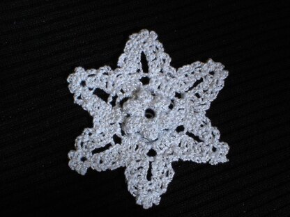I used a silver metallic wrapped size 10 white crochet thread for the sample and a steel US size 8 hook. Diameter is approximately 3 inches from point to point.