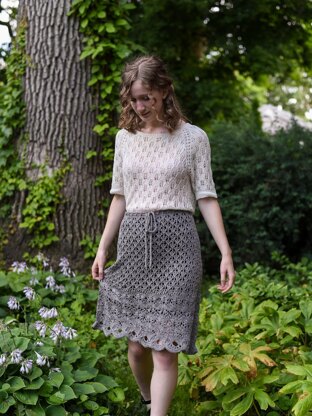 **Notes: ** A fun and flirty skirt, that works as hard as it plays. it flatters the figure, moves with you, and doesn’t sit out.Yarn requirements: 525/600/675/800/925/1100 yds