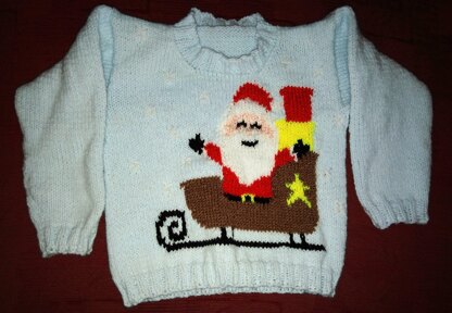When I asked my daughter what she wanted on her Christmas jumper she said Santa with his sleigh snowflakes. This is what I designed and she was very please with the finished result, pretending to fly around with Santa.