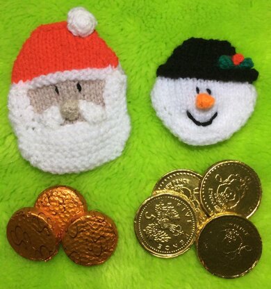 This knitting pattern is of small gift bag with the face of Santa and a snowman. Each measure 8 cms by 8 cms. They are ideal for presents to others, a table decoration with mints or chocolates in or as fundraising items.