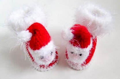 Adorably cute Santa character Baby Booties and Mittens. Very easy and quick to make with lots of pictures to help you along the way. These will keep little feet and hands lovely and warm and look adorable too.