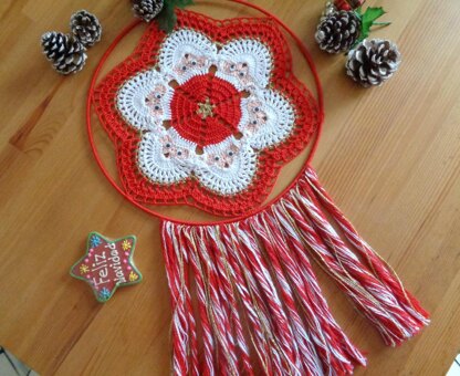 Santa Claus Dream Catcher will make your dreams come true this Christmas! lovely wall hanging piece for your Holidays home decorations, or to use as gifts for your love ones, pattern is a great fun project, quick to make, you will use the basic crochet stitches and pattern include picture tutorial to assembly the metal ring with the crochet piece and how to make the dream catcher fringes, start making a few of these Santa Claus Dream Catcher and be ready for Christmas!