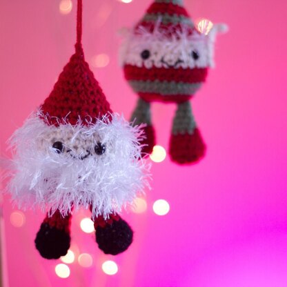 This pattern is for both Santa & Cyril, they are both very similar except Santa makes use of a loop stitch. I have used a horrid slippery eyelash yarn for his beard which looks great but is really fiddly to do! I've included full photographs and instructions for the loop stitch that I've used which isn't too tricky and makes a nice change from the usual single crochet and the eyelash yarn could be substituted for something else white and beardy if you have it to hand.