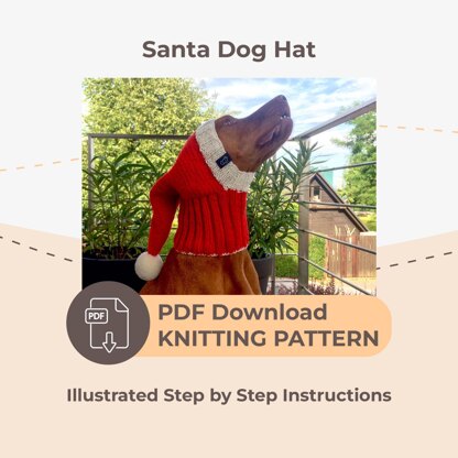 This is A TUTORIAL on how to knit a Santa Dog Hat in four different sizes: XSmall, Small, Medium, Large