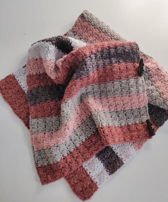 This pattern while easy to crochet does have a few extra steps such as sewing on the buttons and blocking to bring out the stitches.