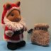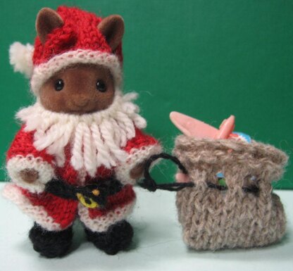 The Christmas Holiday reminds us of the traditional visit of Santa Claus to your miniature world. I have designed this pattern, available in pdf format, for the average knitter to attempt using standard yarn and needles. Instructions for these outfits are given to fit regular-sized adult Sylvanian Families (© acknowledged Flair Ltd) about 3½ inches tall. Standard Calico Critters and Forest Families figurines should also be able to wear this costume. The yarn required is regular 4ply fingering (or yarn sold as sock yarn and designed for knitting with size 2mm needles) in red, black and white. The white yarn may be thinner, right down to 1ply cobweb, and to give a furry effect the white trims should be brushed after completion. I made the beard in white sport DK yarn, but 2 strands of white 4ply (or several strands of 2ply or cobweb) worked as a single strand would give a good effect. For the sack, use any suitably coloured 4ply yarn with size 4mm (or 4.5mm or 3.5mm!) needles.