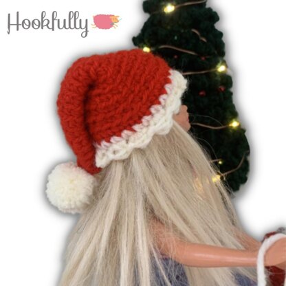 This crochet pattern bundle will help you create a Christmas Santa hat for 12” fashion dolls.