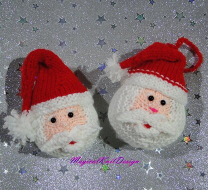 Sant head to decorate your Christmas tree, knitted flat with straight Knitting needles, easy to make with row by row written instructions and photo-tutorial.