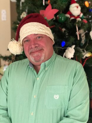My husband Dave really likes to wear a Santa hat around Christmas time. He has, to my shame, a polyester fun-fur Santa hat. I decided that thing wasn’t going to be around for even one more Christmas! This hat is constructed in a slightly different manner to most. First, you will make the cabled headband, then pick up stitches for the remainder of the hat.