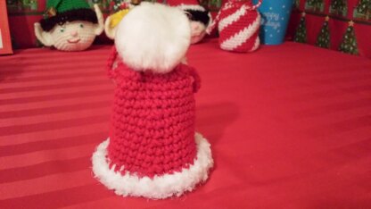 Goody bag or gift bag shaped like Santa Claus's hat. Easy to crochet in sc with a drawstring top and a pompom on top.