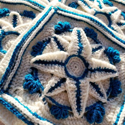 This stunning crochet square inspired by blue sapphires is one of four squares in the Winter Jewel Lapghan Crochet Along. Make the intricately textured squares with this step by step guide featuring photos for each round so you can check your work. A perfect crochet project to cosy up with on a cold winter’s night.
