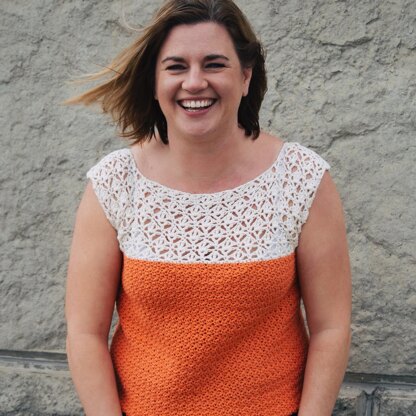 The Sarah Tee is the perfect top to see you through spring and summer. Make it in one or teo colours of #3 weight yarn.