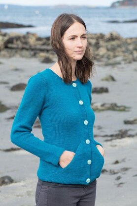 Body is worked from the bottom up, beginning with the hem. Before joining the hem to the body the pockets are shaped with short-rows. The hem and body are joined together and the body is knit to the top of the pockets, where the body and pockets are joined. The body continues to the underarm where it is joined with the sleeves.