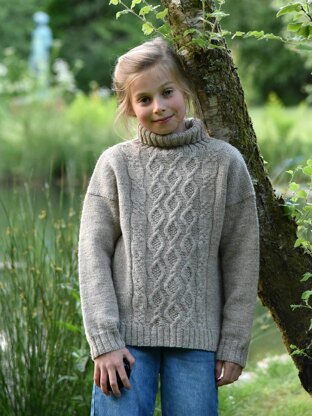 DESIGN OVERVIEW: This comfortable oversized sweater knitted bottom up on straight needles. Design features dropped shoulder, boxy silhouette and long turtleneck collar. Front of sweater is decorated with beautiful cables combo. Front, back and sleeves of sweater knitted separately. After the shoulder seams closed, the stitches picked up for the collar, which is knitted in the round on circular needle. The sweater designed with positive ease of 10-13 cm/ 4 - 5⅛ inches