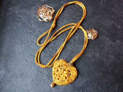A heart that can be made for different purposes: Christmas decoration, necklace or key ring. It will depend on the size of the yarn used. It is composed of two similar parts that are assembled together to look as pretty on the front as on the back. The PDF tutorial includes a main diagram and 9 detail diagrams as well as a step-by-step explanation with 60 photos. It also gives details of hook, thread and bead details for each use of the heart.