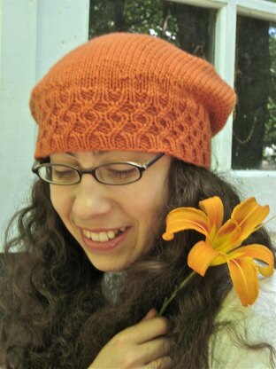 I love slouch hats. I think they’re flattering on nearly everyone no matter what type of hairstyle or face shape they have. Plus they’re also just plain fun to knit. However, I do have one complaint with this style of hat. Sometimes it seems there is just too much bunched up material sagging at the back of your head. From the front this appearance is quite cute, but from the back it might not be. And then there's the fussing to make sure the hat slouches properly to get just the right look. Scalliwag is a compromise and takes care of these concerns. Using short rows, the hat is shaped so that the front portion is longer than the back. This causes the look of a slouched hat without all the added material. (An added bonus is that the hat works up nice and quick since you’re cutting out a large section of fabric.) Also, there's no messing about trying to get correct slouch since the top will always lean toward the back (the portion with less rows). The decreases were worked in a box