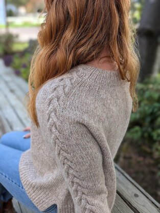 The Scandent Sweater is knit from the top down with a circular yoke construction. Short rows are added to improve the fit. After working the yoke, stitches are put on hold for the sleeves while the body is worked. The hem is divided and each side is worked flat. After working the body, the sleeve stitches are picked up and worked in the round.