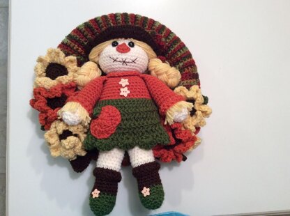 This is a pattern for a Fall Scarecrow Wreath with flowers.