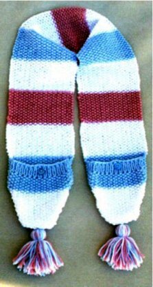 Perfect for school age, teenage, or anyone that has to stand and wait for the bus or taxi. Nice pocket keep hands warm while waiting. And, a button closure so you can keep a small wallet or keys in the pockets too. This is an easy textured stitch with super easy shaping. We recommend this for a beginner that has already learned to knit, and wants to proceed learning a new stitch and increase /decrease method. It will not take long to knit this up! Our scarf is about 54 long. A good size for most adults. Childrens size scarf is 45 inches long. Make one for the kids too! Uses worsted weight yarns, knitting needles, US # 9.