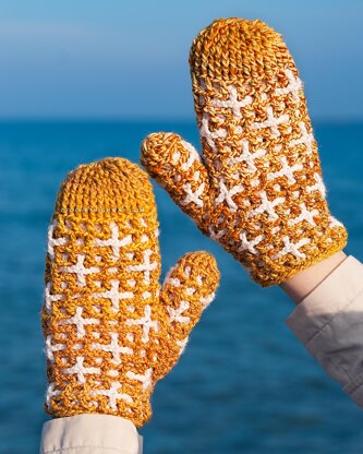 This is the fourth pattern in the Scorpio lineup, and it’s the most advanced of the bunch, giving you the opportunity to challenge yourself and truly master the art of interlocking crochet. Having previously completed an easier pattern, such as the Scorpio Cowl, will be beneficial before starting the mittens. The Scorpio Mittens introduce two new techniques: joining two pieces of fabric together while working in pattern, and decreasing in interlocking pattern.