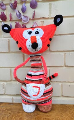 About tiger: The toy is 20 inches (50 cm). Size depends on yarn and hook. multi-colored and orange colors