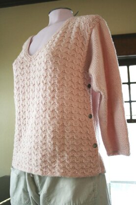 Featuring a winged cable pattern on the front, this roomy sweater has modified drop shoulders and side-seam button plackets for ease of fit. Great for layering!
