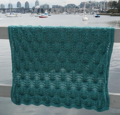 This lacy blanket makes a great gift for any new baby! The undulating curves of lace create texture and movement in the fabric, keeping the blanket light and airy. Finished Size: 84 cm x 99 cm / 33 inches x 39 inches Materials Needed: Approximately 795 m / 870 yards of DK weight yarn. Sample was made with Beroco Vintage DK in Breezeway. I recommnd knitting the blanket with an easy-care, DK weight yarn. 5.0 mm / US 8 circular needles, 80 cm / 32 inches in length. A tapestry needle or crochet hook for weaving in ends.