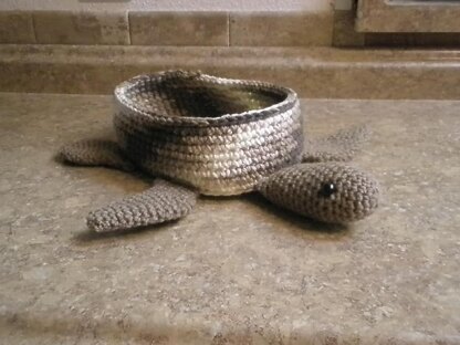 Supplies: 4 ply worsted weight yarn Oval Bowl color (I used Shaded Browns in Red Heart Yarn) approx. 200 yards Head, Flippers & Tail (I used Cafe Latte for oval bowl body in Red Heart Yarn) approx. 110 yards Round Bowl color (I used Woodsy in Red Heart Yarn) approx. 180 yards Head, Flippers & Tail (I used Medium Thyme for round body in Red Heart Yarn) approx. 110 yards G hook 12mm safety eyes (if making for a child under 3 I would crochet, embroidery eyes or use felt) Yarn needle A very little amount of Polyfill stuffing head (or your choice of stuffing) Please read the entire pattern before beginning. Stitch explanation: