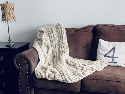 The bulky yarn on larger needles gives the cables a supersized look that makes this blanket a real conversation piece. At 47" wide and 60" long, it's a great size for cuddling on the couch watching movies, or throwing on top of your comforter for an added layer of protection from the chilly winter nights.