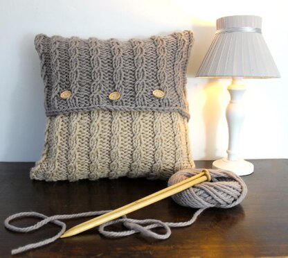Handknit your own cushion cover in sumptuous natural merino wool. Button-up design so you can easily remove the cover for washing. Reverse of cushion cover is all cream. No fiddly cable needles required.