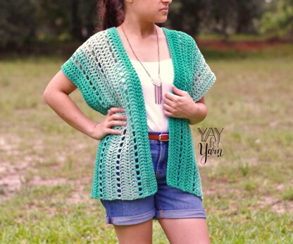 This breezy, lightweight cardigan is perfect for summer! It's an easy, beginner-friendly project you can make today, from just two crocheted rectangles. If you’ve never crocheted a garment before, this is the perfect place to start!