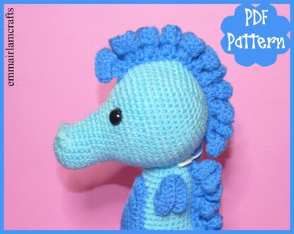 This listing is for a Sammy The Seahorse crochet pattern in pdf format, NOT a finished item. Finished seahorse will be approx. 14" tall when made with specified yarn. Pattern is provided in US abbreviations.