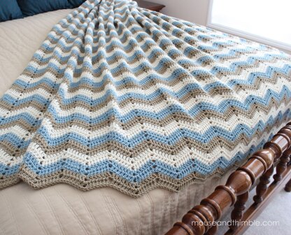 Add a dense layer of warmth to twin, double full, queen, & king size beds in classic 3-color chevron style. Tutorial is suitable for beginner and quick to memorize. Photos will show exactly where to place hook & stitches, how to decrease, make simple color changes, and finish the ends. (Printing pattern instructions without tutorial photos is optional.) Easy to follow instructions + abbreviation key with descriptions. Basic crochet stitches: ch, dc, tr, slst.