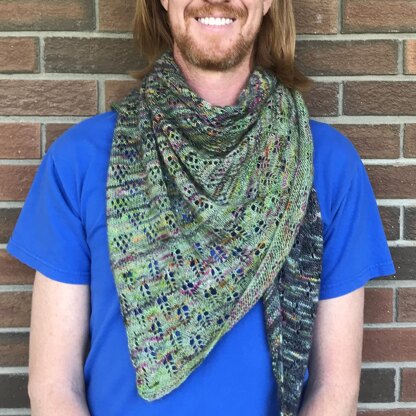 A sort of sample of lace stitches, this triangle shawl will introduce you to 6 different lace stitches that are only worked on the right side of the garment and each wrong side is simply purled. The shawl is worked in layers of lace to give an over-all impression of a fancy layered cake.