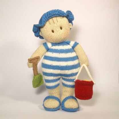 Seaside Jo-Jo doll and his accessories have very few seams and are knitted flat.