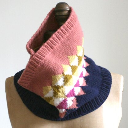 The cowl begins with a color that may seem odd or daring and ends up with an old familiar, comforting color. I started with a weird yet compelling color called clay and finished with an old favorite navy. You can wear the color youʼre already comfortable with close to your face, and have the one youʼre trying out lower down, close to your body. In between add some other colors which could fall into either category. For mine, I chose two pretty yellows, a steady white and a different version of pink from the clay...a rich one called sorbet that Iʼm more comfortable with.