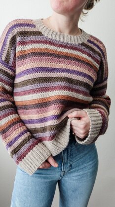 This cozy crochet sweater was inspired by the warm and earthy colors of a desert sunset. It's the perfect sweater for any casual occasion and features an oversized fit, cropped length, extra long and comfy straight sleeves, and knit-like ribbing.