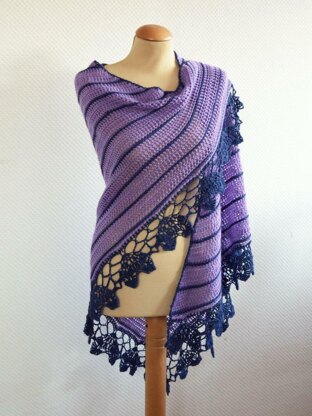 Sedum is a lovely two-tone shawl with a striped body and delicate contrasting lace edging. Make it in the small size for a sweet kerchief or in one of the three larger sizes for a lovely elegant and warm cover-up.